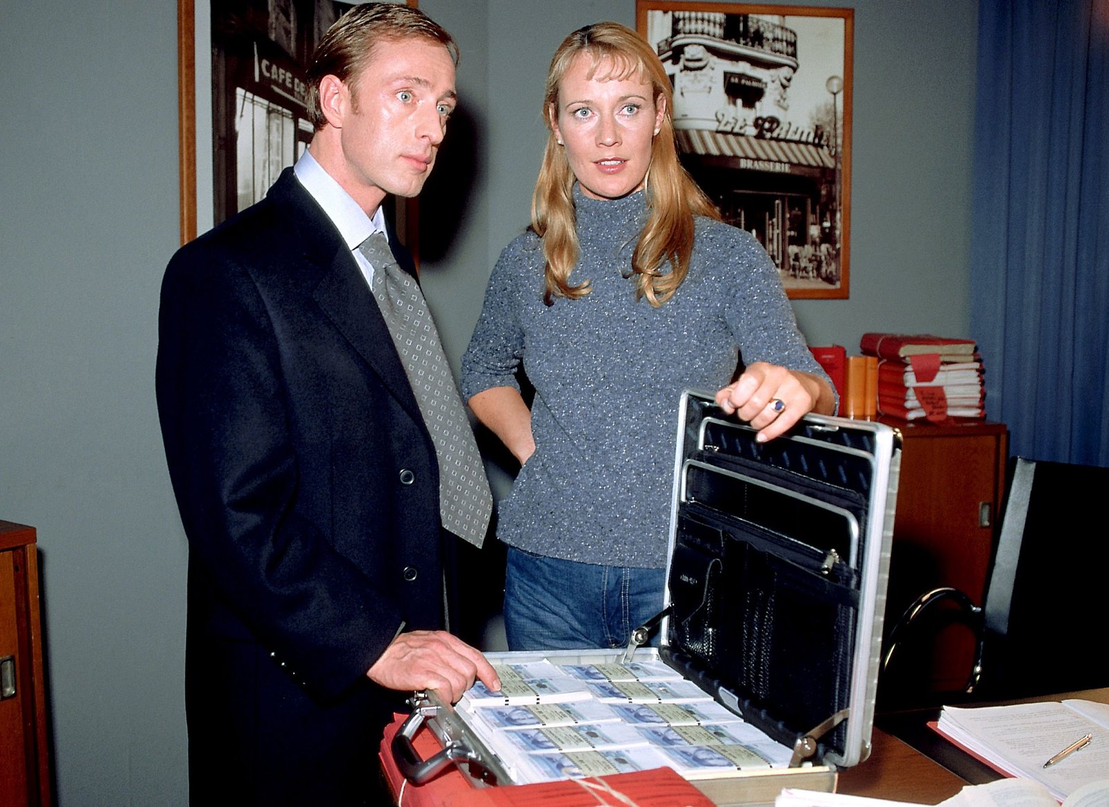 Falsche FreundeStaatsanwältin Glaser (Britta Schmeling) zeigt Roloff (Wilfried Hochhaldinger) das Geld, das bei den Tätern gefunden wurde.Bild: © RTLplus
