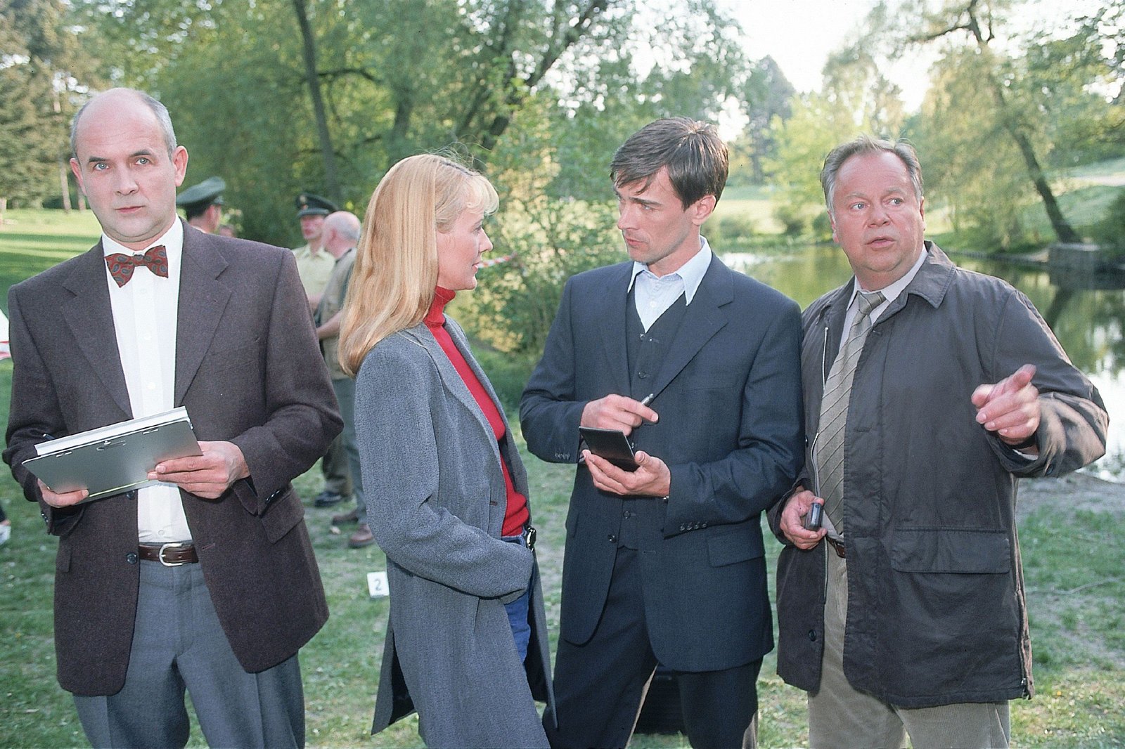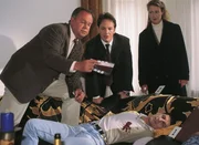 UnglaubwürdigKommissar Bonhoff (Wolfgang Krewe, li.), Oberstaatsanwalt Kampen (Axel Pape, 2.v.li.) und Dr. Duhler (Klaus Schindler, re.) rätseln. Was ist wirklich mit dem Streifenpolizist Armin Sievers passiert? Wollte er nur abtauchen und sich für Tod erklären lassen, um die Lebensversicherung zu kassieren? (hi. Komparsen)Bild: © Nitro.