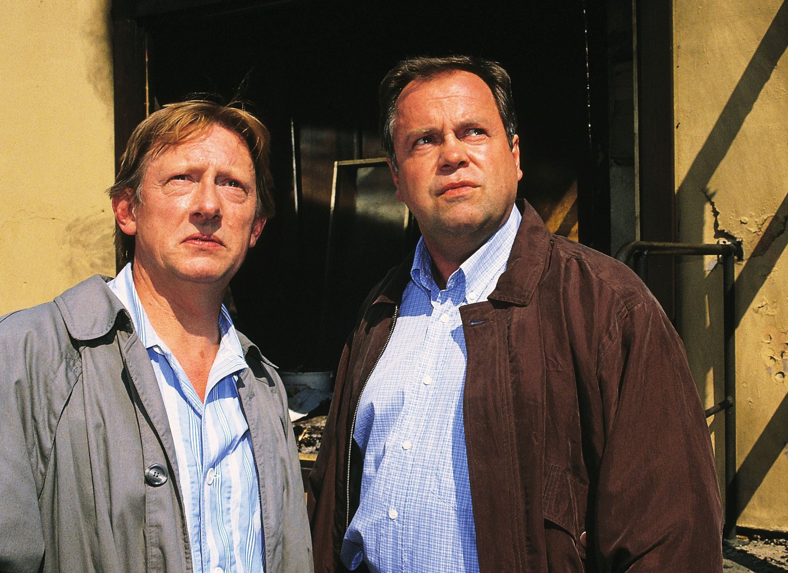 BabymordKriminalhauptkommissar Stefan Kehler (Wolfgang Bathke, li.) und Kriminalkommissar Peter Wolniak (Uwe Fellensiek, re.) verhaften Bernd Martens (Horst Kotterba). Hat er seine kleine Tochter umgebracht?Bild: © RTLplus / Rolf Baumgartner