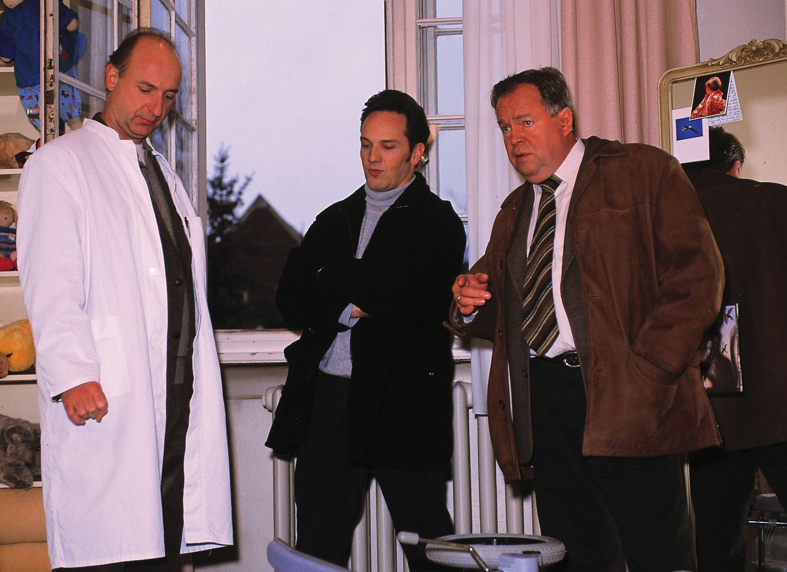 Franziskas GeheimnisDie Kommissare Kehler (Wolfgang Bathke, re.) und Bongartz (Max Gertsch, Mi.) überlegen mit Prof. Fink (Michael Schönborn), ob die Patientin aus dem Fenster der Klinik gestoßen wurde - und wenn, von wem...Bild: © RTLplus