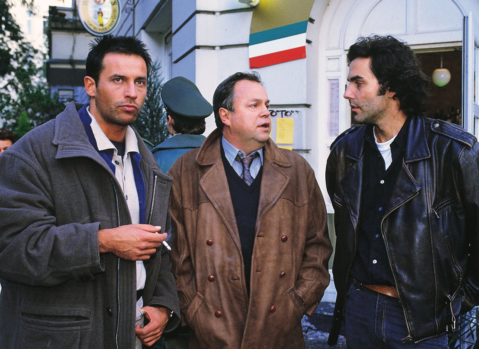 Zweimal ermordetMit Hilfe des Beamten Ralph Soltau (Alexander Beck) von der Abteilung Organisierte Kriminalität, finden Kehler (Wolfgang Bathke, M.) und Eschenbach (Matthias Bullach, l.) zwei eingereiste Killer.Bild: © RTLplus