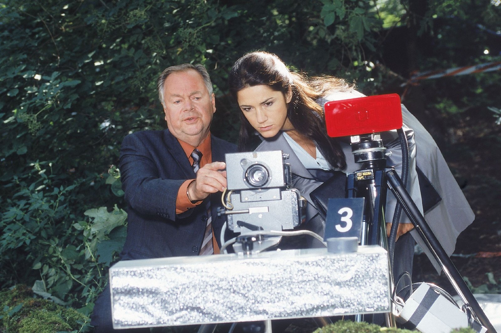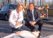 Tödliche DistanzKommissar Kehler (Wolfgang Bathke) und Staatsanwältin Sturm (Mariella Ahrens) nehmen den Tatort in Augenschein.Bild: © MG RTL D / Rolf Baumgartne