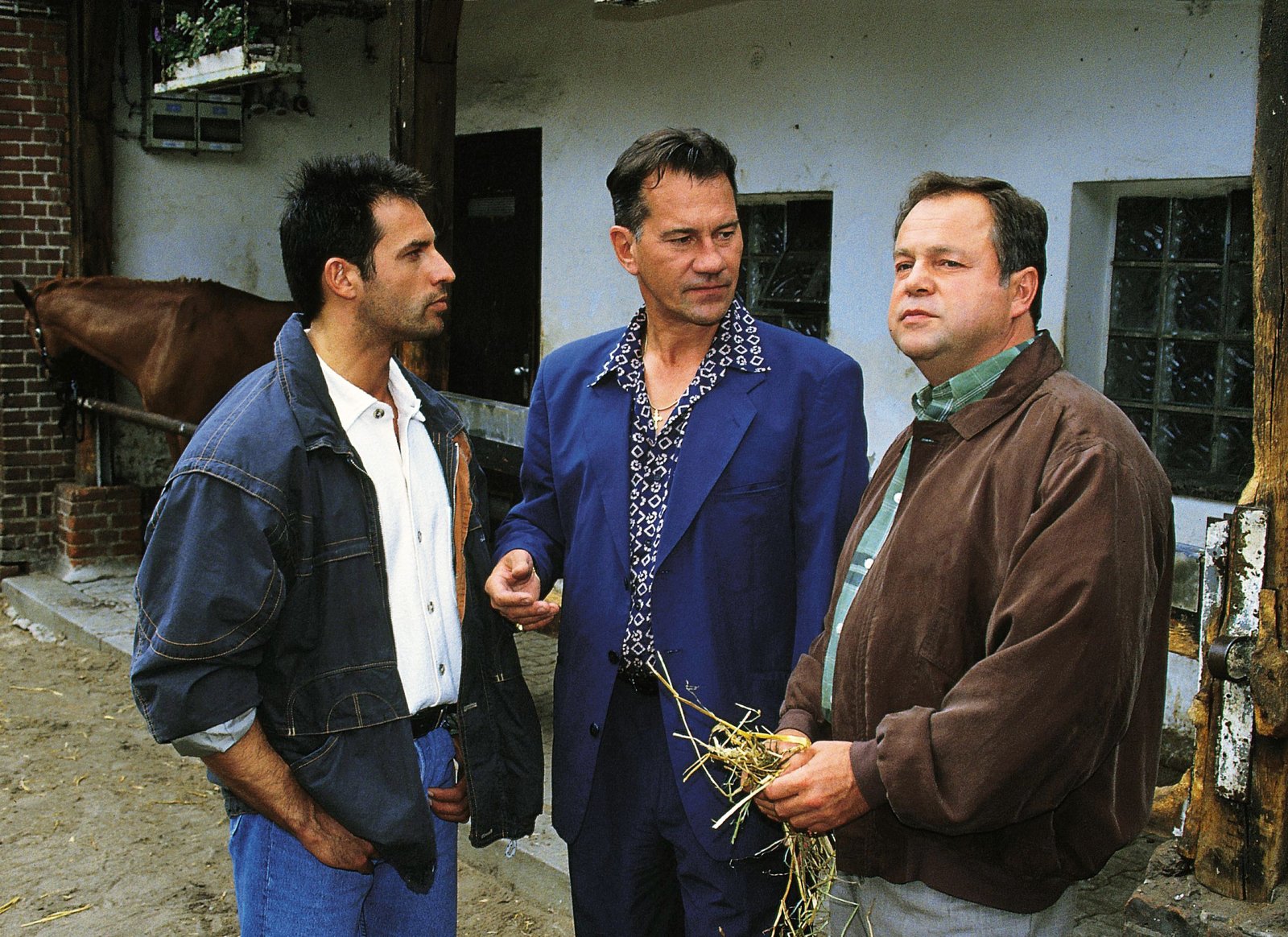 Der AußenseiterKriminalhauptkommissar Kehler (Wolfgang Bahro, r.) und sein Kollege Eschenbach (Matthias Bullach, l.) befragen Dahlbeck, den Besitzer des Gewinnerpferdes "Glücksfee", nach einem Mordfall auf dem Pferderennplatz.Bild: © RTLplus