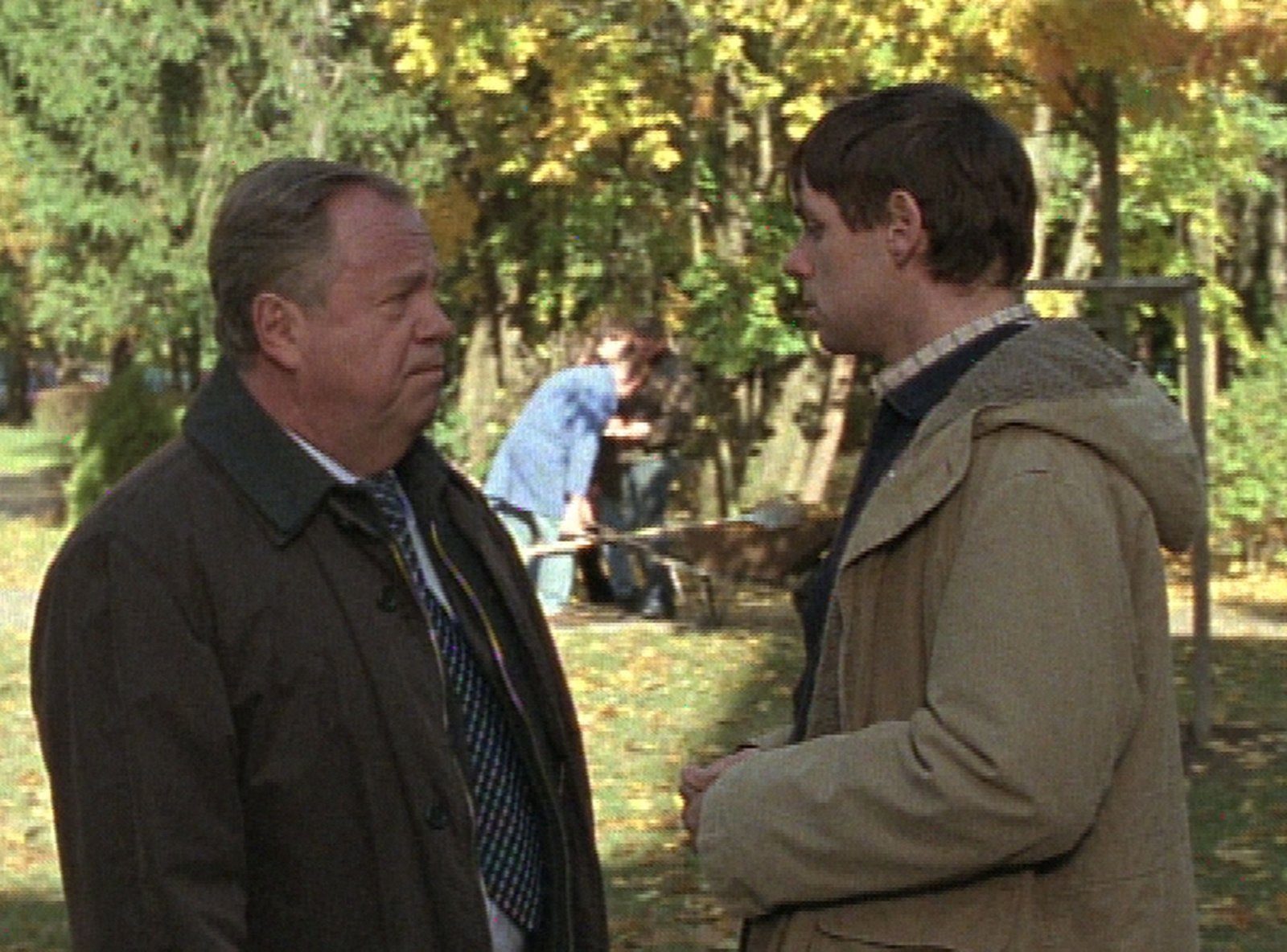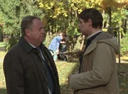 Der Tod kommt zweimalSchon seit Wochen werden Joggerinnen mit ähnlicher Statur und Aussehen von einem Unbekannten angegriffen. Diesmal hat er sein Opfer getötet. Warum? Kommissar Kehler (Wolfgang Bathke, li.) und Oberstaatsanwalt Kampen (Axel Pape) tauschen ihre ersten Einschätzungen des Tathergangs aus.Bild: © MG RTL D / Rolf Baumgartne