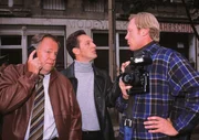 Das OrakelDer Fotograf (Jo Neander, re.), der am Tatort aufgetaucht ist, nervt die Kommissare Kehler (Wolfgang Bathke, li.) und Bongartz (Max Gertsch). Er behindert sie bei ihrer Arbeit.Bild: © RTLplus
