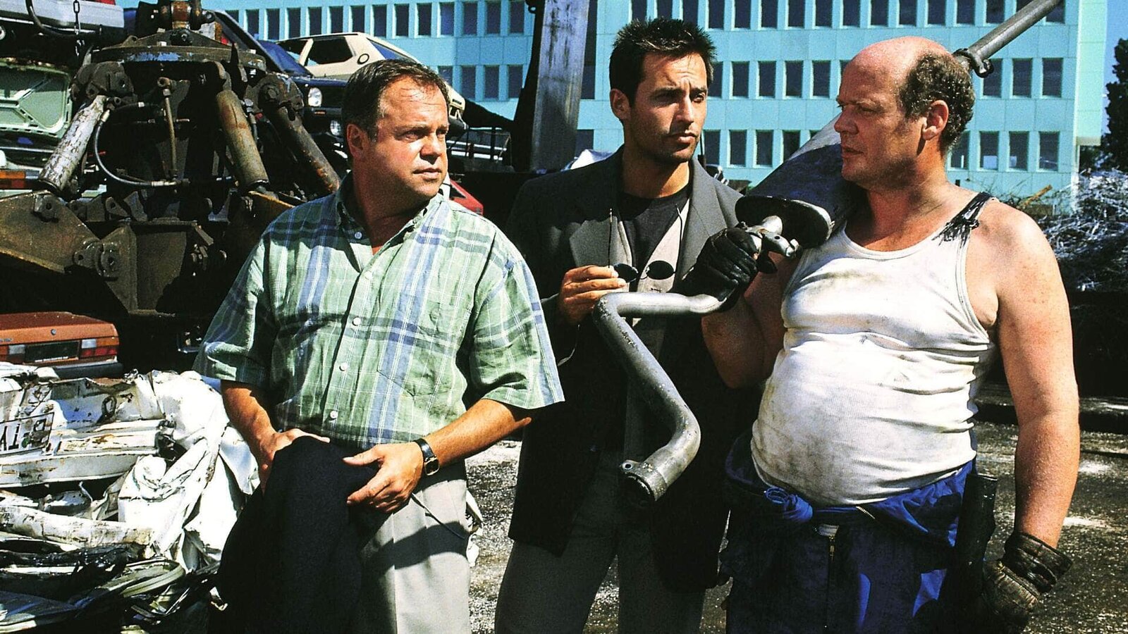 VollmondStefan Kehler (Wolfgang Bathke, li.) und sein Kollege Mike Eschenbach (Matthias Bullach, Mi.) suchen einen Schrotthändler (Wolfgang Finck) auf. Von ihm erhoffen sie sich Hinweise...Bild: © MG RTL D