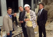 Tödlicher EinbruchDie Ermittler (li. Wolfgang Krewe, Klaus Schindler, Wolfgang Bathke; re. Axel Pape) wollen von dem Polier (Holger Gimpel, 2.v.re.) wissen, was er beobachtet hat.Bild: © MG RTL D / Rolf Baumgartne