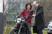 Unter GeschwisternProf. Karin Patzelt (Marijam Agischewa, l.) zeigt Wolfgang Berger (Horst Günter Marx, r.) stolz ihre neue Errungenschaft.Bild: © ARD/Jens Ulrich Koch