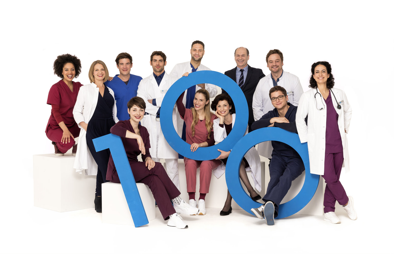 Plan BARD PROGRAMMDIREKTION, IN ALLER FREUNDSCHAFT - DIE JUNGEN ÄRZTE Vorabend-Weekly, immer donnerstags um 18.50 Uhr im Ersten. Im Erfurter Johannes-Thal-Klinikum wird gefeiert: Am Donnerstag, 20. Juli, läuft die 100. Folge „In aller Freundschaft – Die jungen Ärzte“ im Ersten. Seit dem Start am 22. Januar 2015 konnte die Serie ihren Erfolg kontinuierlich steigern und erreichte von Januar bis Mai 2017 durchschnittlich 2,47 Millionen Zuschauer, was einem Marktanteil von 10,0 % entspricht. In der Jubiläumsfolge werden die angehenden Chirurgen um Dr. Niklas Ahrend (Roy Peter Link) vor eine besondere Bewährungsprobe gestellt. Die beiden Freunde Marvin und Hendrik haben ihr Leben bei einer irrwitzigen Aktion aufs Spiel gesetzt und werden im Johannes-Thal-Klinikum versorgt. Schnell stellt sich heraus, dass Hendrik schwerkrank ist und auf eine dringend benötigte Spenderleber wartet. Die Ärzte tun alles, um ihren Patienten zu retten. Da naht Unterstützung von ungeahnter Seite … Im Bild v.l.n.r.: Dr. Leyla Sherbaz (Sanam Afrashteh), Dr. Theresa Koshka (Katharina Nesytowa), Julia Berger (Mirka Pigulla), Vivienne Kling (Jane Chirwa)Bild: © ARD/Markus Nass / ARD-Programmdirektion