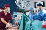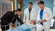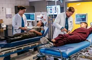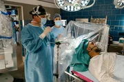 KampfgeistCarl Fischer (Özgür Karadeniz, r.) muss am Schädel operiert werden. Das erfordert nicht nur gute Teamarbeit, sondern auch höchste Konzentration von Dr. Lindner (Christian Beermann, l.) und Rebecca Krieger (Milena Straube, 2.v.l.).Bild: © ARD/Jens Ulrich Koch / ARD-Programmdirektion