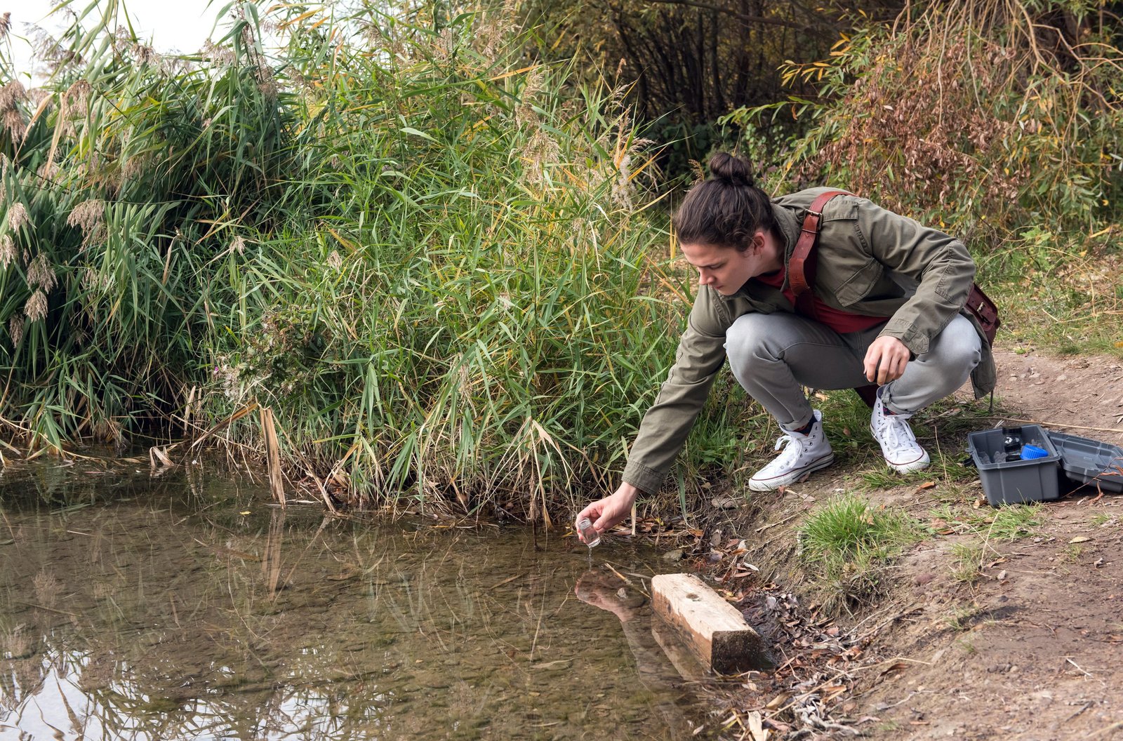 Wen wir liebenTom (Tilman Pörzgen) nimmt Proben am Weiher.Bild: © ARD/Jens Ulrich Koch