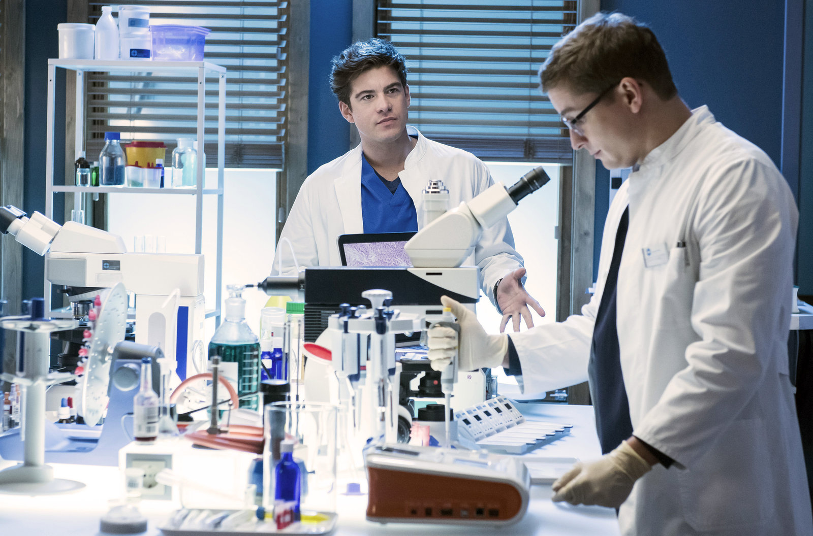 AuferstandenBen (Philipp Danne, l.) und Elias (Stefan Ruppe, r.) treffen sich im Labor. Ben bittet seinen Freund um einen Gefallen.Bild: © ARD/Jens Ulrich Koch