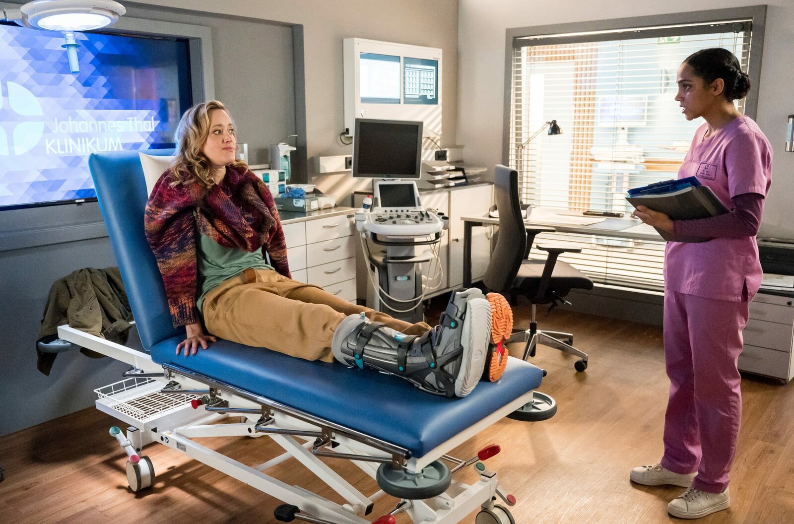 LeidenschaftenEmma Jahn (Elisa Agbaglah, r.) versucht ihre Patientin Josephine Wolf (Judith Richter, l.) davon zu überzeugen, dass sie ernster mit ihrer Verletzung umgehen sollte.Bild: © ARD/Jens Ulrich Koch