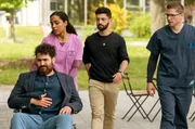 VerantwortungEngin Celik (Volkan Isbert, M.) vermutet einen Herzinfarkt bei seinem ungleichen Zwillingsbruder Can (Ugur Kaya, l.) und bittet Dr. Emma Jahn (Elisa Agbaglah, 2.v.l.) und Dr. Elias Bähr (Stefan Ruppe, r.) um Hilfe.Bild: © ARD/Jens-Ulrich Koch