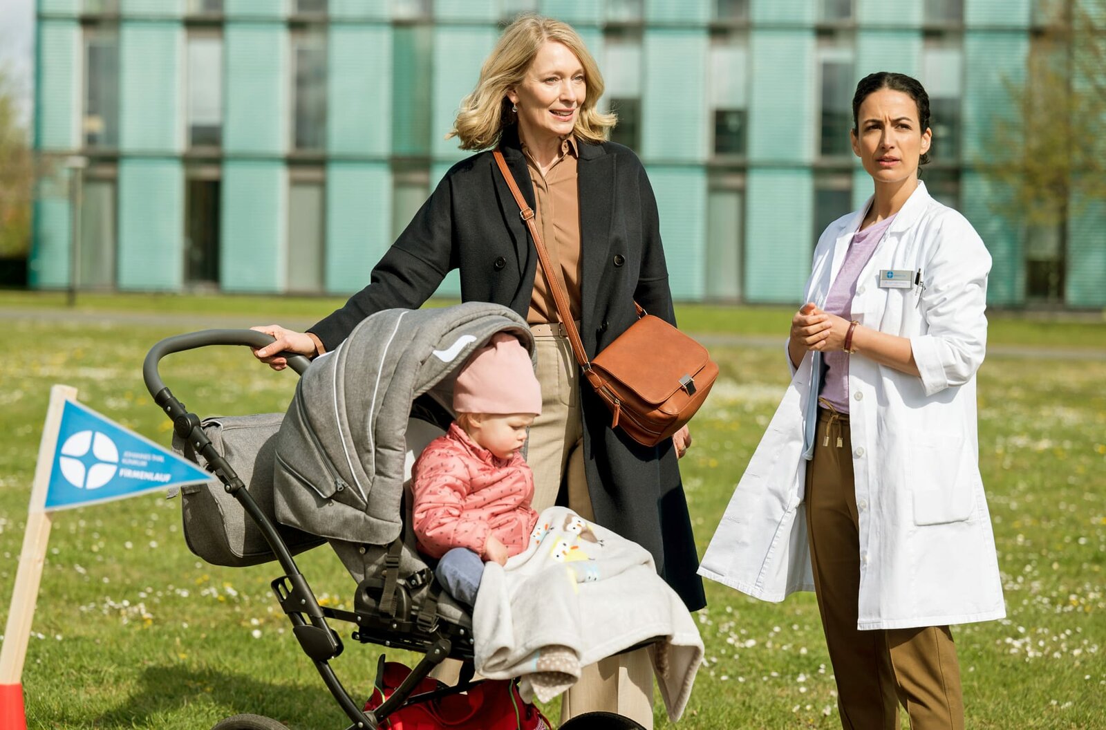 OrientierungslosAnne-Charlotte Ahlbeck (Katja Weitzenböck, l.) kommt mit Raya zum Firmenlauf, um gemeinsam mit Leyla (Sanam Afrashteh, r.) Ben anzufeuern.Bild: © ARD/Jens-Ulrich Koch