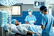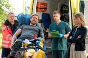 TrugschlussDr. Niklas Ahrend (Roy Peter Link, 2.v.r.) und Theresa Koshka (Katharina Nesytowa, r.) sind überrascht, als auch noch Stefans Chef Justus Vogel (Frank Auerbach, 2.v.l. mit Komparse, l.) nach einem Arbeitsunfall ins JTK eingeliefert wird.Bild: © NDR/ARD/Jens Ulrich Koch
