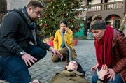Falsche HoffnungSabine Scholz (Bea Brocks, l.) braucht dringend ein offenes Ohr, als sie zufällig Dr. Elias Bähr (Stefan Ruppe, 2.v.r.) und Mikko Rantala (Luan Gummich, r.) über den Weg läuft.Bild: © ARD/Jens-Ulrich Koch