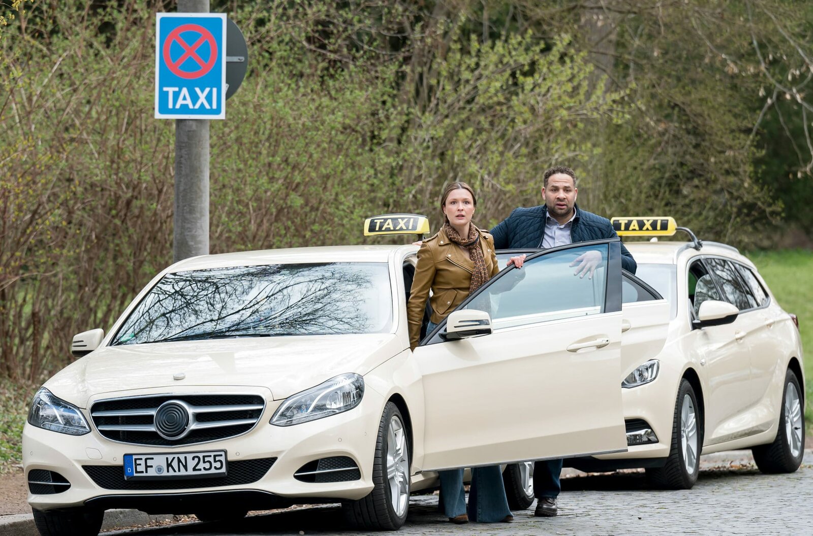GlückstagViktoria Stadler (Isabella Krieger, l.) und Matteo Moreau (Mike Adler, r.) werden Zeugen eines Unfalles.Bild: © ARD/Jens-Ulrich Koch