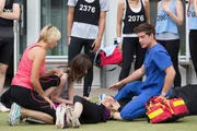 WunderAls sie gerade ein Foto mit ihrem Idol macht will, bricht Selina zusammen. Ben Ahlbeck und Selinas Mutter, die sie schon gesucht haben, sind zum Glück gleich zur Stelle. V.l.n.r. Heike Drechsler (spielt sich selbst), Frauke Kleemann (Natascha Paulick), Selina Kleemann (Karlotta Kawalla), Ben Ahlbeck (Philipp Danne).Bild: © ARD/Jens Ulrich Koch