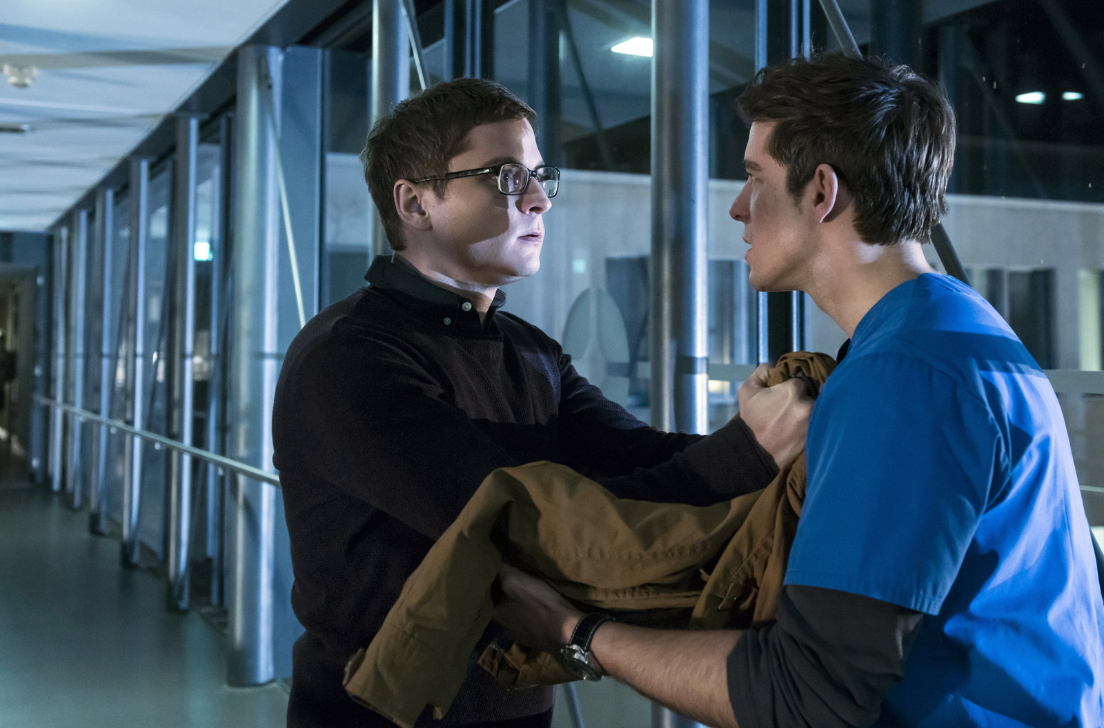 Deckung aufgebenNach einem Unfall im Forschungslabor wird Boris Liebig (Beat Marti, r.) von seinem alten Studienfreund Marc Lindner (Christian Beermann, r.) behandelt.Bild: © ARD/Jens Ulrich Koch