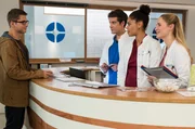 HerzenswünscheElias gibt vor, Dinge für Boston im JTK erledigen zu müssen. V.l.n.r. Elias Bähr (Stefan Ruppe), Ben Ahlbeck (Philipp Danne), Vivienne Kling (Jane Chirwa), Julia Berger (Mirka Pigulla)Bild: © ARD/Jens Ulrich Koch