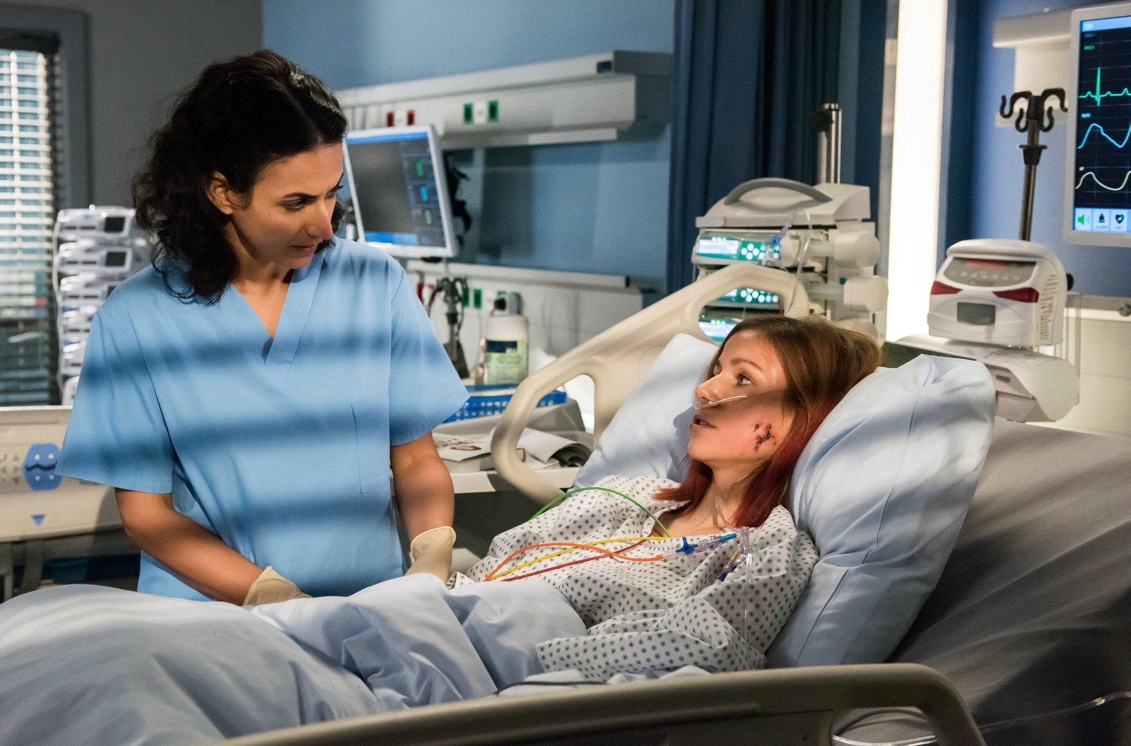AuswegARD IN ALLER FREUNDSCHAFT - DIE JUNGEN ÄRZTE FOLGE 242, "Ausweg", am Donnerstag (07.01.21) um 18:50 Uhr im ERSTEN. Julia Berger (Mirka Pigulla, r.) kümmert sich um die schwangere Janina May (Xenia Tiling, l.). © ARD/Jens Ulrich Koch, honorarfrei - Verwendung gemäß der AGB im engen inhaltlichen, redaktionellen Zusammenhang mit genannter ARD-Sendung bei Nennung "Bild: ARD/Jens Ulrich Koch" (S2+). ARD-Programmdirektion/Bildredaktion, Tel: 089/5900-23534, bildredaktion@DasErste.deBild: © ARD/Jens Ulrich Koch / ARD-Programmdirektion
