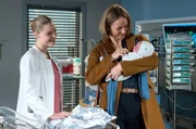 Zufall und PlanungJulia Berger (Mirka Pigulla, l.) zeigt der frisch gebackenen Oma ihr Enkelkind. Nina Sander (Lara Joy Körner, r.) ist überwältigt.Bild: © ARD/Jens Ulrich Koch