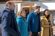 Ganz in WeißDie Assistenzärzte des Johannes-Thal-Klinikums nehmen an einem Lehrgang teil, in dem sie die Versorgung und Bergung verunglückter Personen in den Bergen trainieren. Die Bergführerin Maria Dengler (Cosima Lehninger, 2.v.l.) und der Bergführer Gregor Blanz (Nicholas Reinke, 2.v.r.) begrüßen im Beisein von Leyla Sherbaz ( Sanam Afrashteh, r.) und Klinikleiter Wolfgang Berger (Horst Günter Marx,l.) das Ärzteteam zu dem Wettkampf.Bild: © ARD/Stefanie Leo
