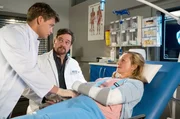 Zufall und PlanungElias (Stefan Ruppe, M.) untersucht Karim Elwan (Camill Jamall, l.), der nach einem Autounfall ins JTK eingeliefert wurde. Rebecca (Milena Straube, r.) ist der junge Mann bereits bekannt. Sie hat die letzte Nacht mit ihm verbracht.Bild: © MDR\ARD/Jens Ulrich Koch