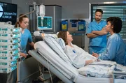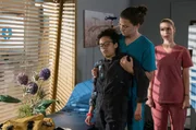 Die junge Patientin Melissa Gaethgens (Victoria Schulz, l.) verhält sich eigenartig. Im Gegensatz zu Ben (Philipp Danne, M.) ist Rebecca (Milena Straube, r.) skeptisch, ob ihre Schmerzen echt sind.Bild: © ARD/Jens Ulrich Koch