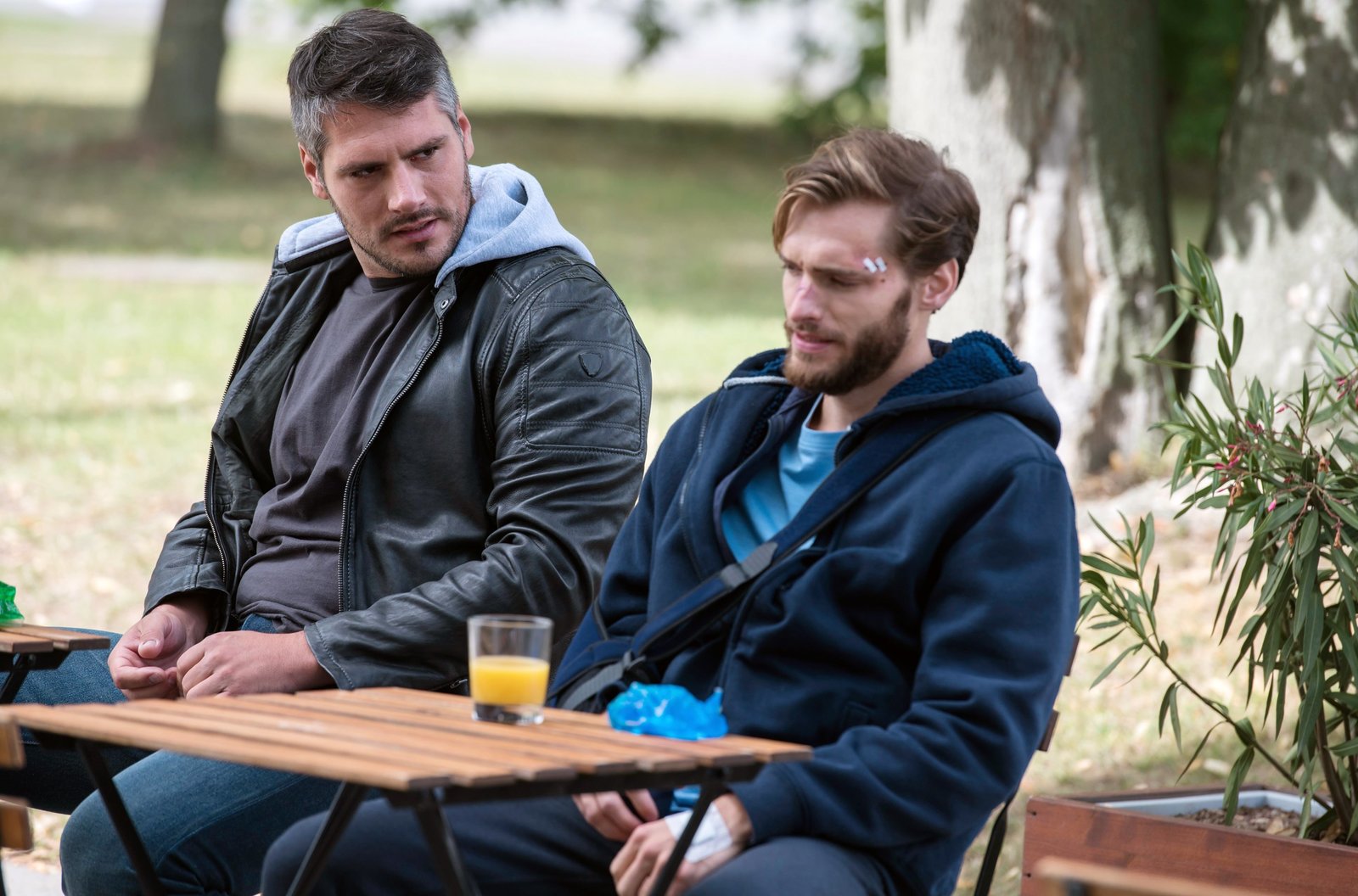 VertrauensbruchDie beiden Männer Fred Wacker (Max Koch, l.) und Nils Reichendorf (Vinzenz Wagner, r.) sind seit klein auf beste Freunde und Fred kann den Vertrauensbruch seines Freundes nicht verarbeiten.Bild: © MDR/ARD/Jens Ulrich Koch