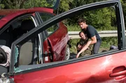 Außer AtemBen (Philipp Danne, r.) kümmert sich um den Unfallverursacher Jonas Beyer (Jonas Hämmerle, l.).Bild: © ARD/Jens Ulrich Koch