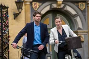 IrrwegeAuf dem Weg zur Arbeit trifft Marc Lindner (Christian Beermann, r.) auf den Fahrradkurier Matthias Doppler (David Nolden). Dieser hat sich auf kuriose Weise verletzt.Bild: © MDR/ARD/Jens Ulrich Koch