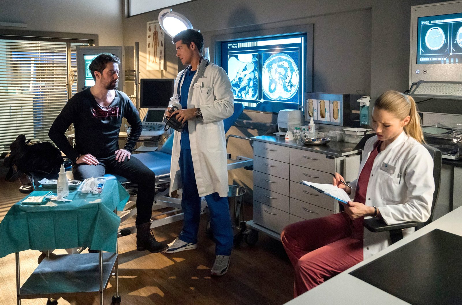 MissverständnisseJulia (Mirka Pigulla, r.) und Ben (Philipp Danne, M.) suchen nach der Ursache für die vergangene Bewusstlosigkeit ihres Patienten Joni Schubert (Björn von der Wellen, l.).Bild: © ARD/Jens Ulrich Koch