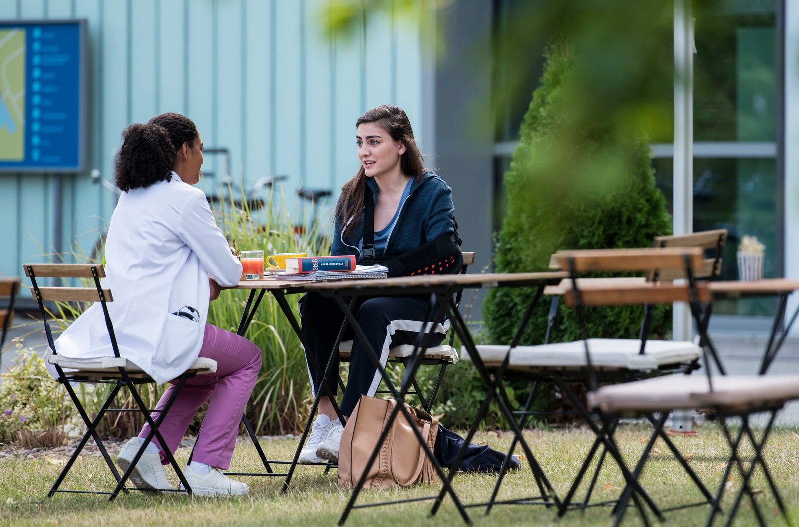 Herz und VerstandEmma (Elisa Agbaglah, l.) findet immer besseren Zugang zu ihrer Patientin und versucht eine Ursache für Patrizias (Selin Dörtkardes, r.) Leiden herauszufinden.Bild: © ARD/Jens Ulrich Koch