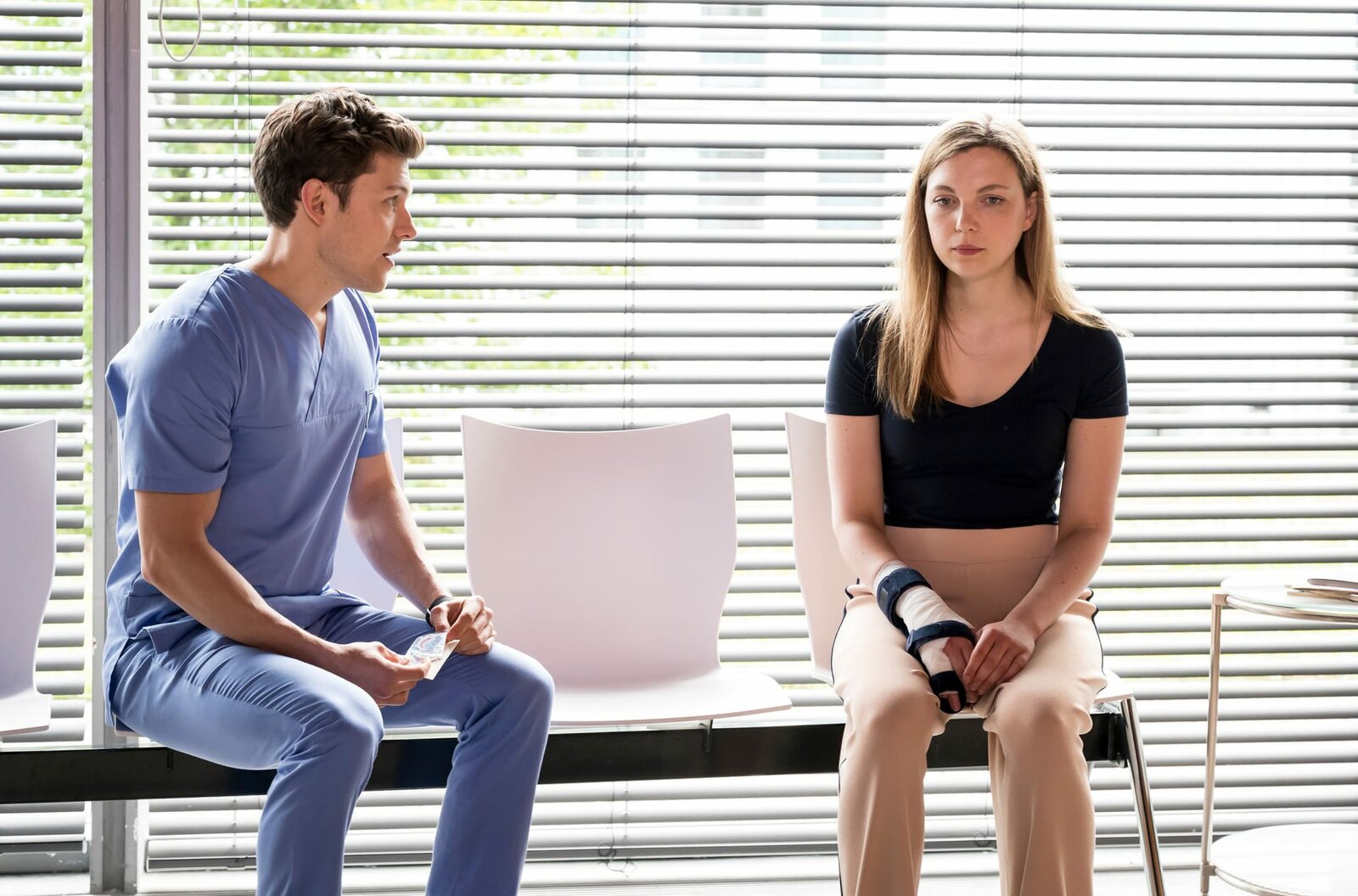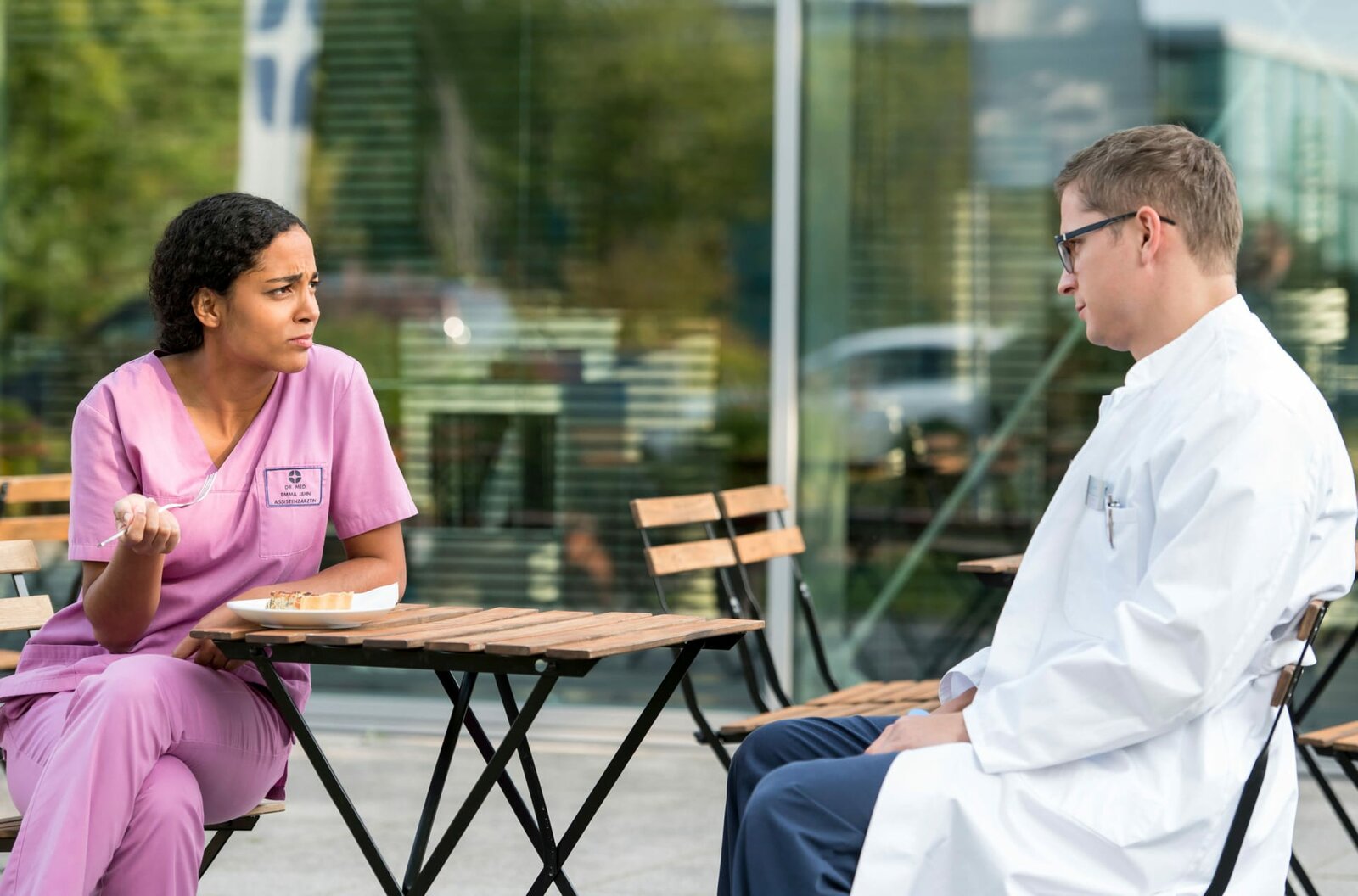 TabuFlorian Osterwald (Lion Wasczyk, l.) ist besorgt, da seine Patientin Ines Czerny (Anais Dahl, r.) ungeklärte Symptome aufweist.Bild: © ARD/Jens-Ulrich Koch