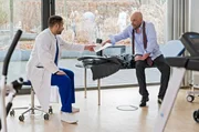 Am RandDr. Helmut Grimm (Thomas Balou Martin, r.) stimmt einer Untersuchung durch Dr. Moreau (Mike Adler, l.) zu. Doch das Geschäftliche kann er trotz der Umstände nicht ruhen lassen.Bild: © ARD/Jens Ulrich Koch