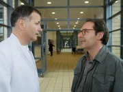 Wohin des Weges?Dr. Heilmann (Thomas Rühmann, links) hat bei Dr. Weimar (Peter von Strombeck) nach einem Schwächeanfall massive gesundheitliche Schäden festgestellt. Als er Dr. Weimar darauf anspricht, erzählt ihm dieser, dass er wahrscheinlich nur noch 1-2 Jahre zu leben hat und bietet ihm gleichzeitig die Klinikleitung in Mosambik an.Bild: © MDR/MDR/Krajewsky