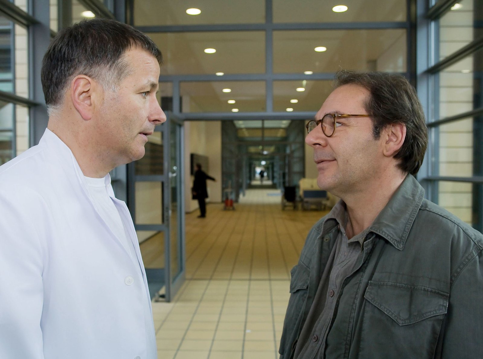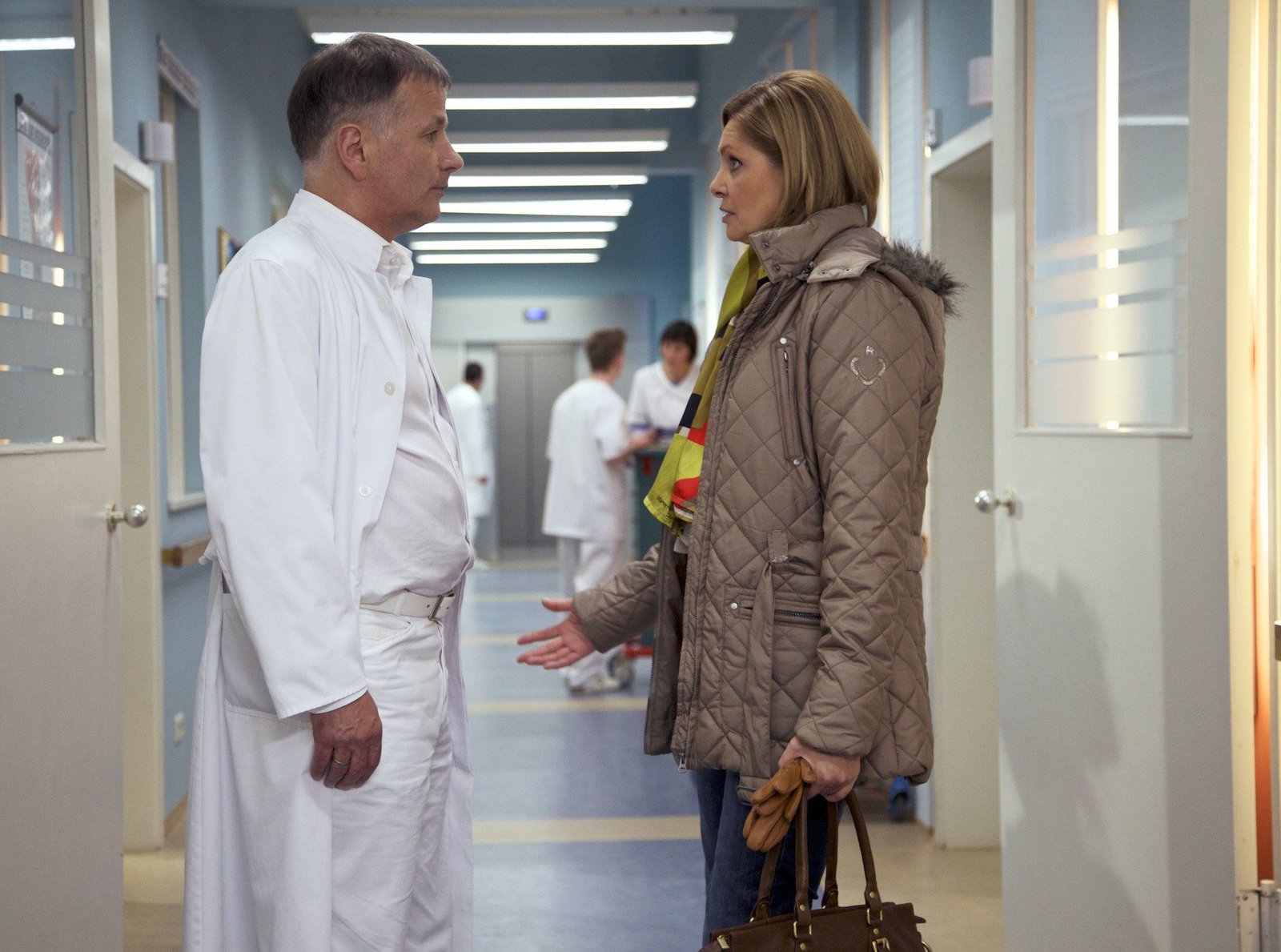 BeziehungsprüfungMartin Stein (Bernhard Bettermann) hat Christina Buchmann (Iris Böhm) um eine Aussprache gebeten. Sie versucht, sich von ihm fern zu halten und möchte sogar die Behandlung von Marie, seiner Tochter, in die Hände eines Kollegen geben. Martin macht ihr unmissverständlich klar, dass er sich in sie verliebt hat. Als sie jedoch seine Zuneigung mit therapeutischen Floskeln rechtfertigt, macht Martin auf dem Absatz kehrt und geht.Bild: © MDR/Krajewsky
