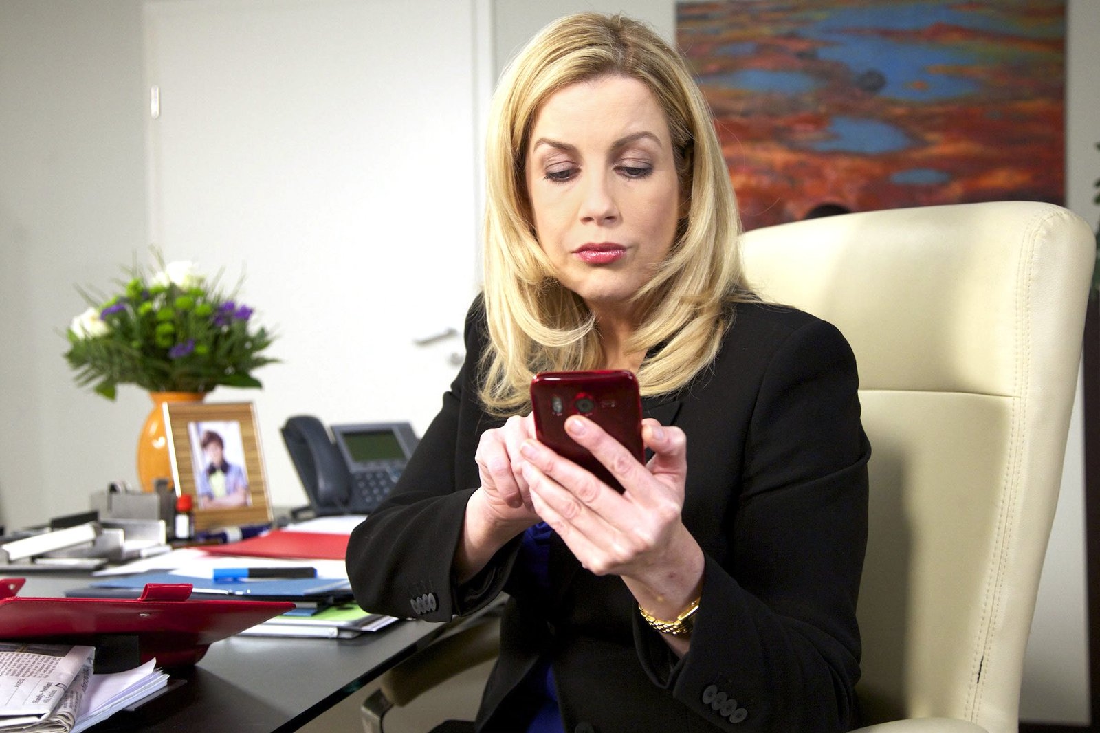 TäuschungsmanöverMDR Fernsehen IN ALLER FREUNDSCHAFT FOLGE 609, "Täuschungsmanöver", am Dienstag (19.08.14) um 11:45 Uhr. In einer Besprechung entwendet Sarah Marquardt (Alexa Maria Surholt) mit einem simplen Trick das Mobiltelefon von Vera Bader, der Assistentin des Gesundheitsdezernenten. Sarah glaubt fest daran, nun endlich die Beweise für die intrigante Vergabe des Bauchchirurgiezentrums zu finden und somit Vera Baders Bestechung mit handfesten Argumenten untermauern zu können.Bild: © MDR/Wernicke