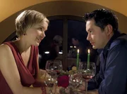 VerliebtPhilipp Brentano (Thomas Koch) und Carola Cleven (Anna Kubin) haben sich zu einem gemeinsamen romantischen Abendessen im Charlotto verabredet.Bild: © MDR/MDR/Krajewsky