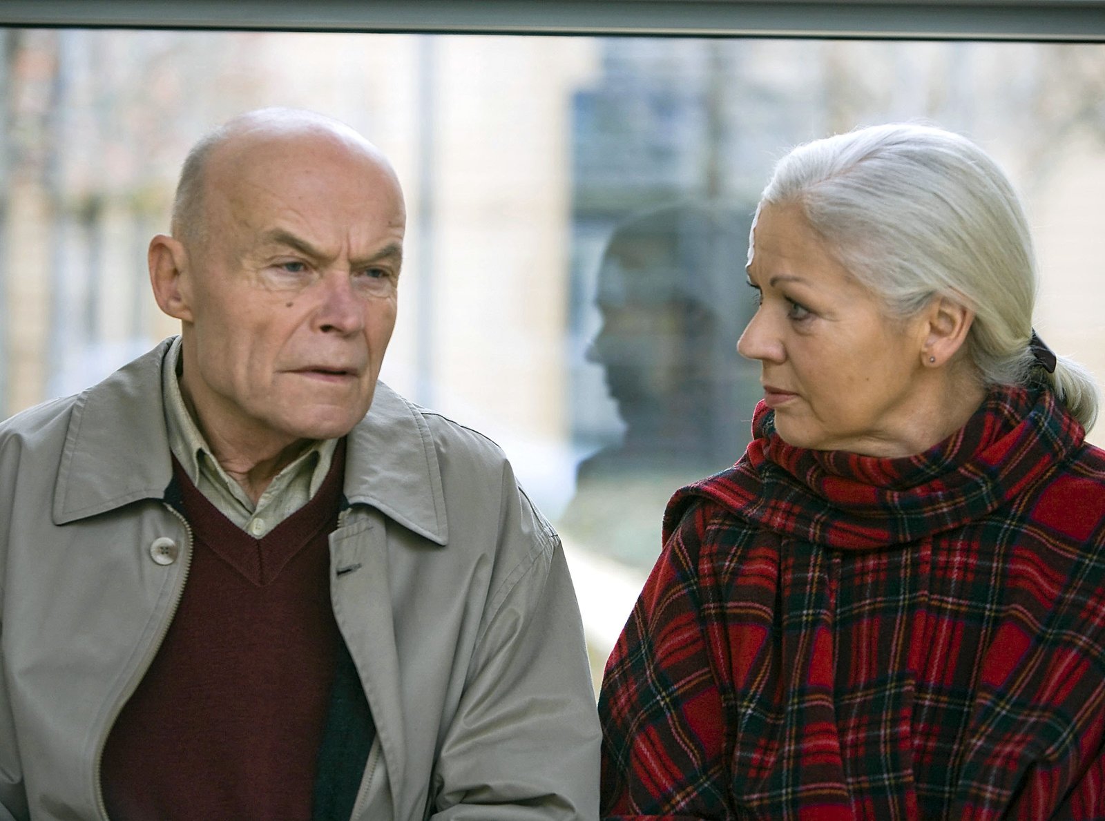 SchuldSeine Frau Gerda (Solveig Müller) macht ihm klar, dass er ohne die Operation sterben könnte und dann würde sie das gleiche Schicksal ereilen, wie ihn, als Alfred seine erste Frau verloren hat.Bild: © MDR/Krajewsky