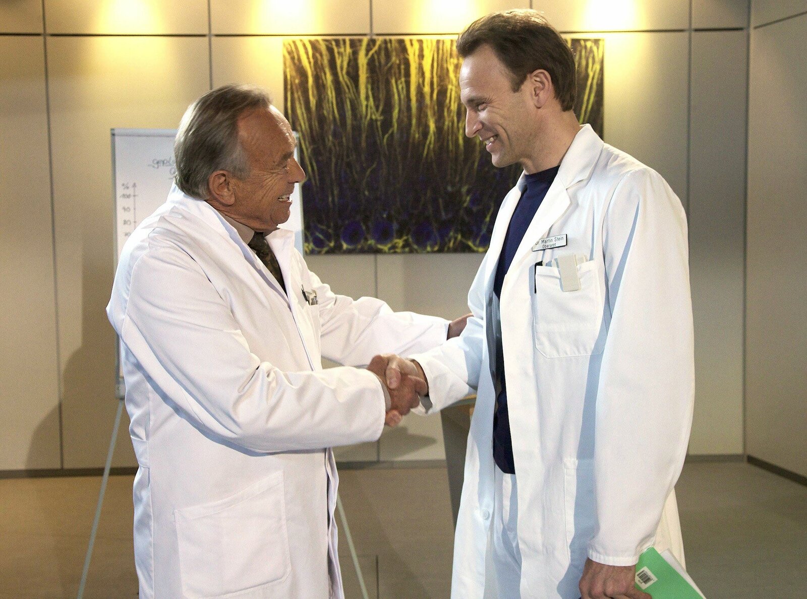 Der Moment der WahrheitMDR Fernsehen IN ALLER FREUNDSCHAFT FOLGE 655, "Der Moment der Wahrheit", am Freitag (24.10.14) um 11:40 Uhr. Dr. Rolf Kaminski (Udo Schenk, li.) warnt Dr. Martin Stein (Bernhard Bettermann, re.) davor, seine Seele zu verkaufen. Martin ist ein Bündnis mit Verwaltungschefin Sarah Marquardt eingegangen und hat sich als Kandidat um den Posten der Klinikleitung aufstellen lassen - damit geht er in Konkurrenz zu seinem ehemals besten Freund Dr. Roland Heilmann.Bild: © MDR/Saxonia/Wernicke