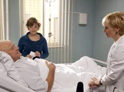 GenerationswechselDr. Kathrin Globisch (Andrea Kathrin Loewig, rechts) erklärt Theodor Ochsenblut (Heinz G. Lück, liegend), dass die Operation gut verlaufen ist. Theodor fragt sofort nach dem Verbleib der Münzen und seine Enkelin Miriam (Greta Galisch de Palma) kann ihn beruhigen als sie auf einen Briefumschlag auf seinem Nachtisch deutet.Bild: © MDR/MDR/ Peter Krajewsky