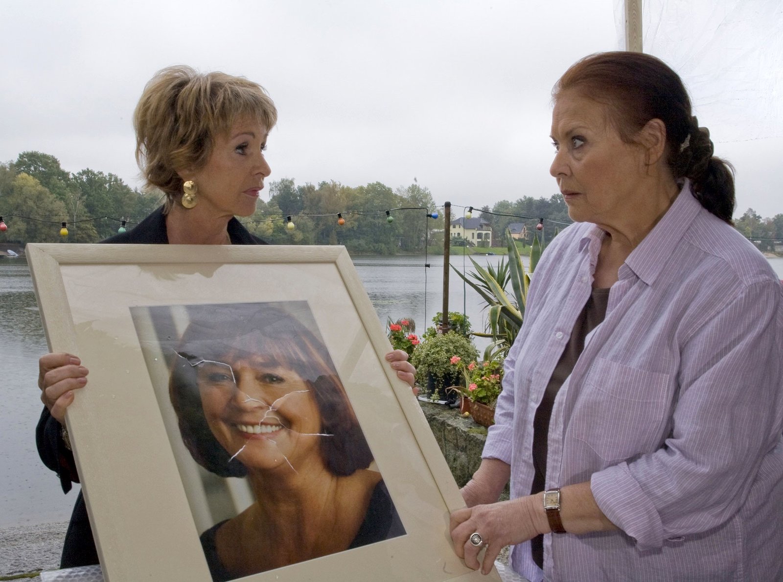 Im AlleingangDurch ein Missverständnis haben sich Otto und Charlotte (Ursula Karusseit, re.) dazu entschlossen, zusammen zu ziehen. Doch beim Renovieren fällt Charlotte das Bild von Ottos verstorbener Frau herunter und geht kaputt. Barbara (Uta Schorn, li.) die Charlotte gerade einen Besuch abstattet, versucht beim Vertuschen zu helfen.Bild: © MDR/Krajewsky