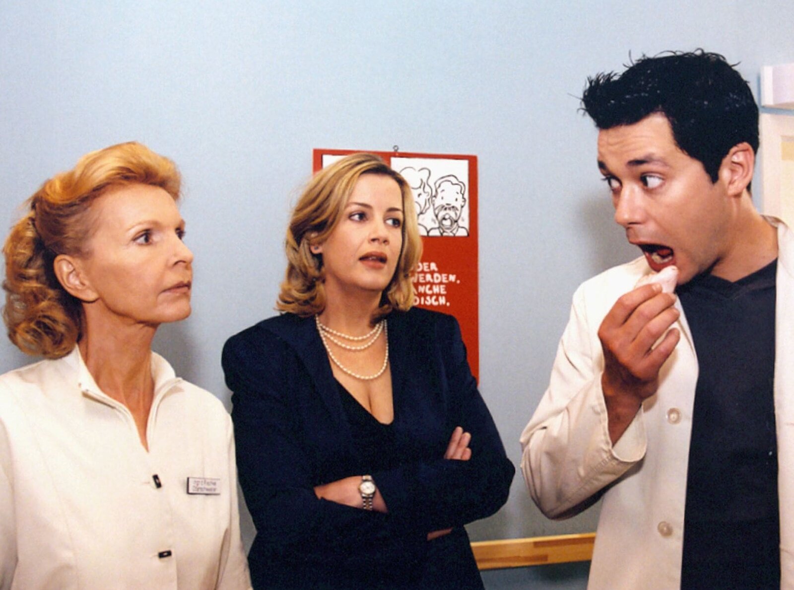Der Held des TagesMDR Fernsehen IN ALLER FREUNDSCHAFT FOLGE 156, "Der Held des Tages", am Samstag (27.03.10) um 15:10 Uhr. Sarah Marquardt (Alexa Maria Surholt, Mitte) hat ein neues Essens-Versorgungssystem in der Sachsenklinik eingeführt, das die Oberschwester Ingrid (Jutta Kammann, links) wie auch dem AiPler Brentano (Thomas Koch) zu schaffen machen...Bild: © MDR/Krajewski