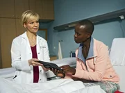WünscheMDR Fernsehen IN ALLER FREUNDSCHAFT FOLGE 618, "Wünsche", am Montag (01.09.14) um 11:45 Uhr. Imani Kutesa (Florence Kasumba, re.), eine in Tansania geborene und in einem deutschen Kinderheim aufgewachsene Krankenschwester, bittet Dr. Kathrin Globisch (Andrea Kathrin Loewig, li.) inständig um eine Hüftoperation. Da der Eingriff nicht zwingend notwendig ist, erzählt Imani Kathrin, dass sie zurück nach Tansania möchte, um dort als Krankenschwester zu arbeiten.Bild: © MDR/Wernicke