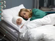 Ein Augenblick des GlücksBastian Marquardt (Johann Lukas Sickert) hat die Operation überstanden, doch es ist noch völlig unklar, ob er wieder ganz gesund wird. Sarah Marquardt (Alexa Maria Surholt) verbringt jede Minute am Bett ihres Sohnes und wartet darauf, dass er aufwacht.Bild: © MDR/MDR/Wernicke