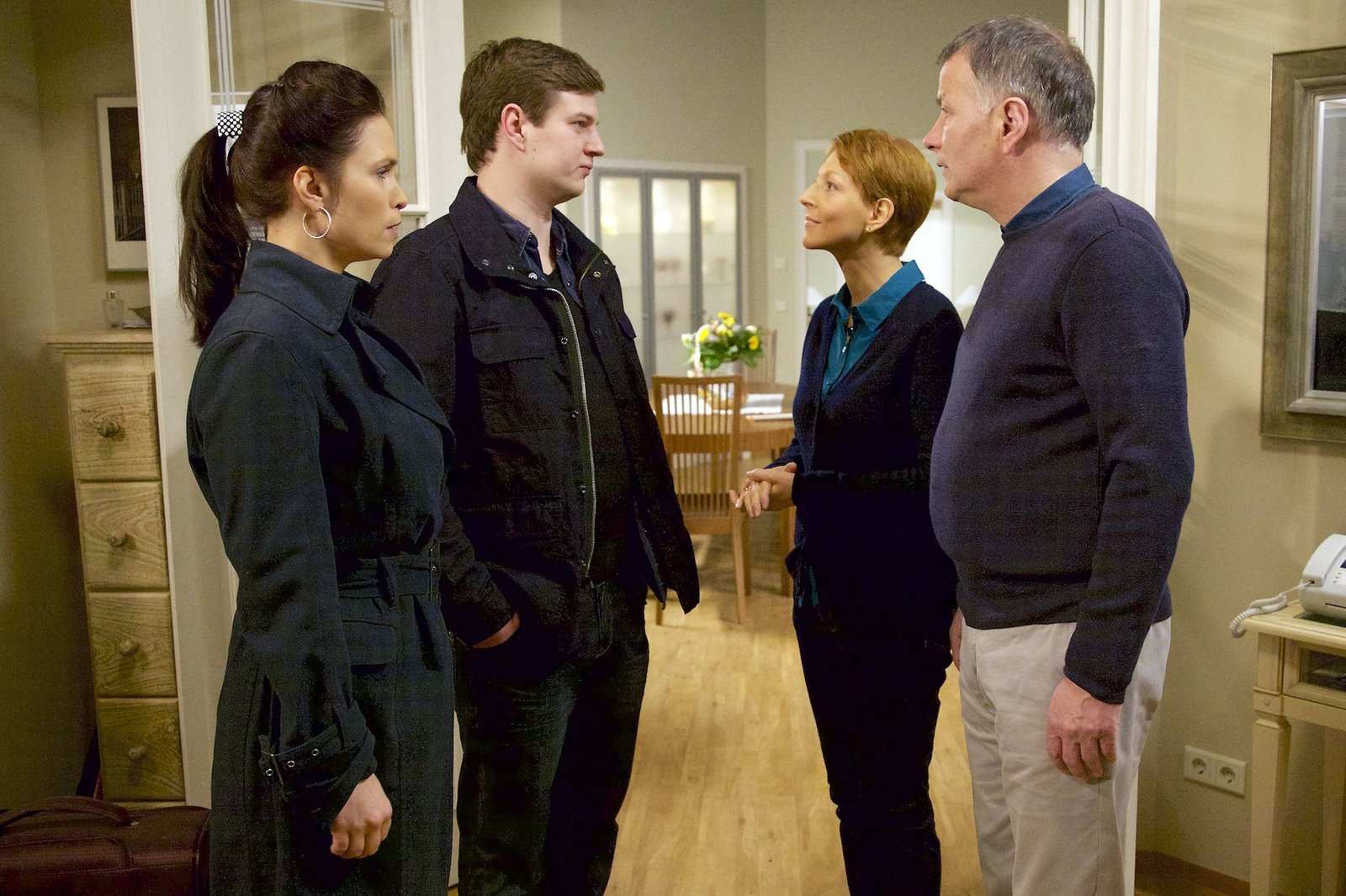 Stürmische OsternARD/MDR IN ALLER FREUNDSCHAFT - FOLGE 681, "Stürmische Ostern", am Dienstag (31.03.15) um 21:00 Uhr im ERSTEN. Jakob Heilmann (Karsten Kühn, 2.v.li.) und seine Freundin Caro Strehle (Sandra S. Leonhard, li.) haben eine Osterüberraschung der besonderen Art für Pia (Hendrikje Fitz, 2.v.re.) und Roland Heilmann (Thomas Rühmann, re.). Da in ihrer Wohnung über die Osterfeiertage ein Wasserschaden renoviert werden muss, wollen sich die beiden bei Jakobs Eltern einquartieren. Sogar Roland merkt Caro und Jakob an, dass es bei ihnen gerade nicht besonders gut läuft. Pia freut sich über ein paar gemeinsame Tage und kann so vielleicht mit mütterlichem Rat behilflich sein.Bild: © MDR/Saxonia/Wernicke