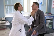 HoffnungsschimmerPia und Roland Heilmann (Thomas Rühmann, rechts) planen einen Kurzurlaub. Beide freuen sich auf ein paar erholsame Tage, doch kurz vor Reiseantritt plagen Roland Halsschmerzen. Eine Untersuchung durch seinen Freund Dr. Martin Stein (Bernhard Bettermann) ergibt, dass er eine eitrige Mandelentzündung hat. Da Pia gerade den dritten Zyklus ihrer Chemotherapie hinter sich hat, fürchtet Roland, er könne seine Frau anstecken.Bild: © MDR/MDR/Wernicke